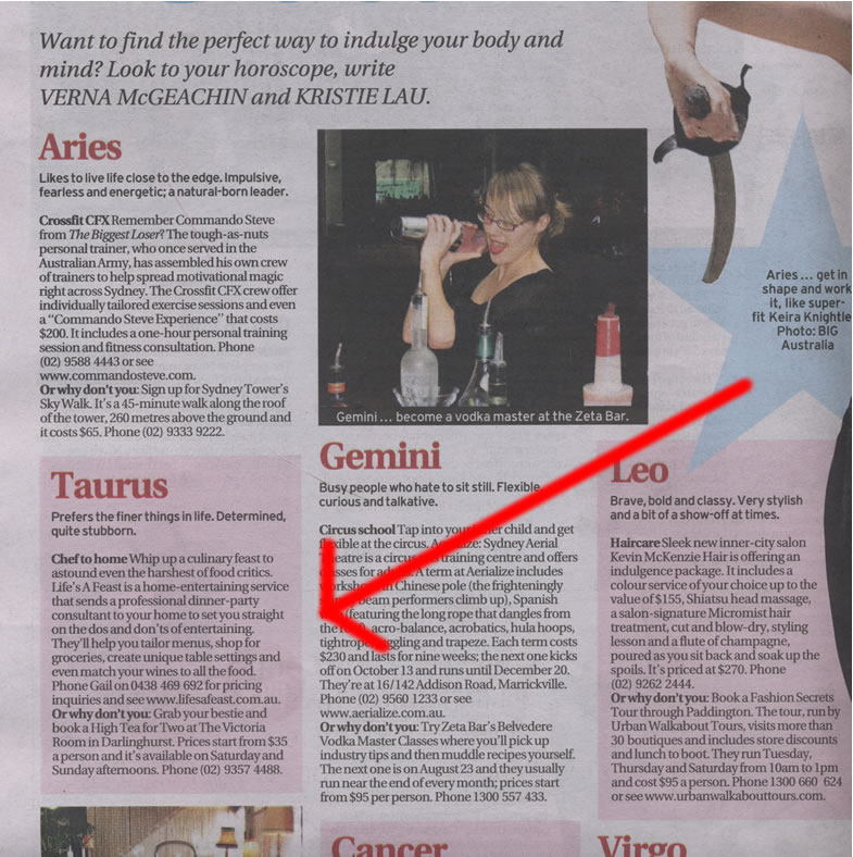 life’s a feast was featured in this article that appeared in the Sun-Herald on Sunday 10th August 2008: