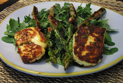 Fry 1cm thick slices of Haloumi cheese in a lightly oiled frypan. Serve on a bed of baby rocket leaves with fresh lime wedges and freshly ground black pepper.