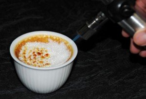 8. Sprinkle 1½ teaspoons of castor sugar evenly over the top of each Brûlée. Place under the grill and cook for 2-3 minutes or until sugar bubbles and caramelises. (If you own a kitchen blowtorch, run this over the sugar until it caramelises).