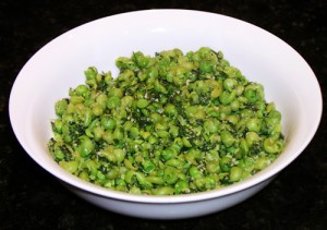 1.    Bring a saucepan of salted water to the boil over the stove and cook the peas for 2-3 minutes. Drain well and return to the saucepan.